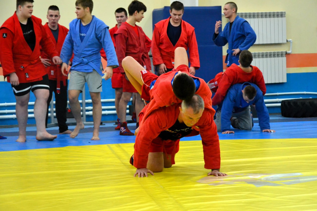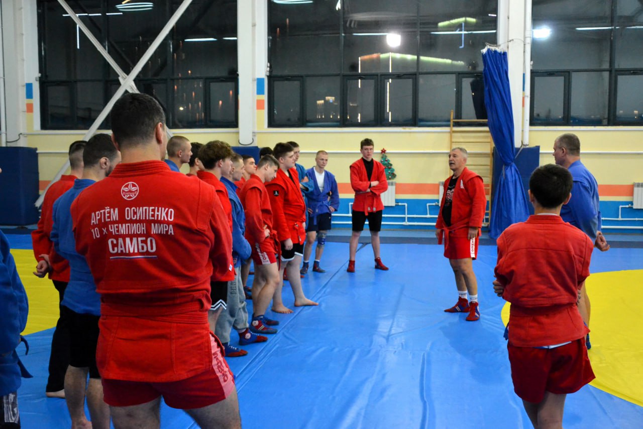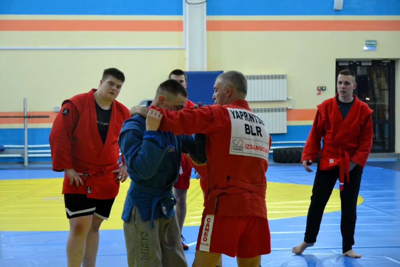 Сразу две легенды самбо приняли участие в открытой тренировке во Дворце единоборств. Компанию Артему Осипенко составил Заслуженный мастер спорта СССР, многократный чемпион СССР, Европы и мира, вице-председатель Белорусской федерации самбо Владимир Япринцев.