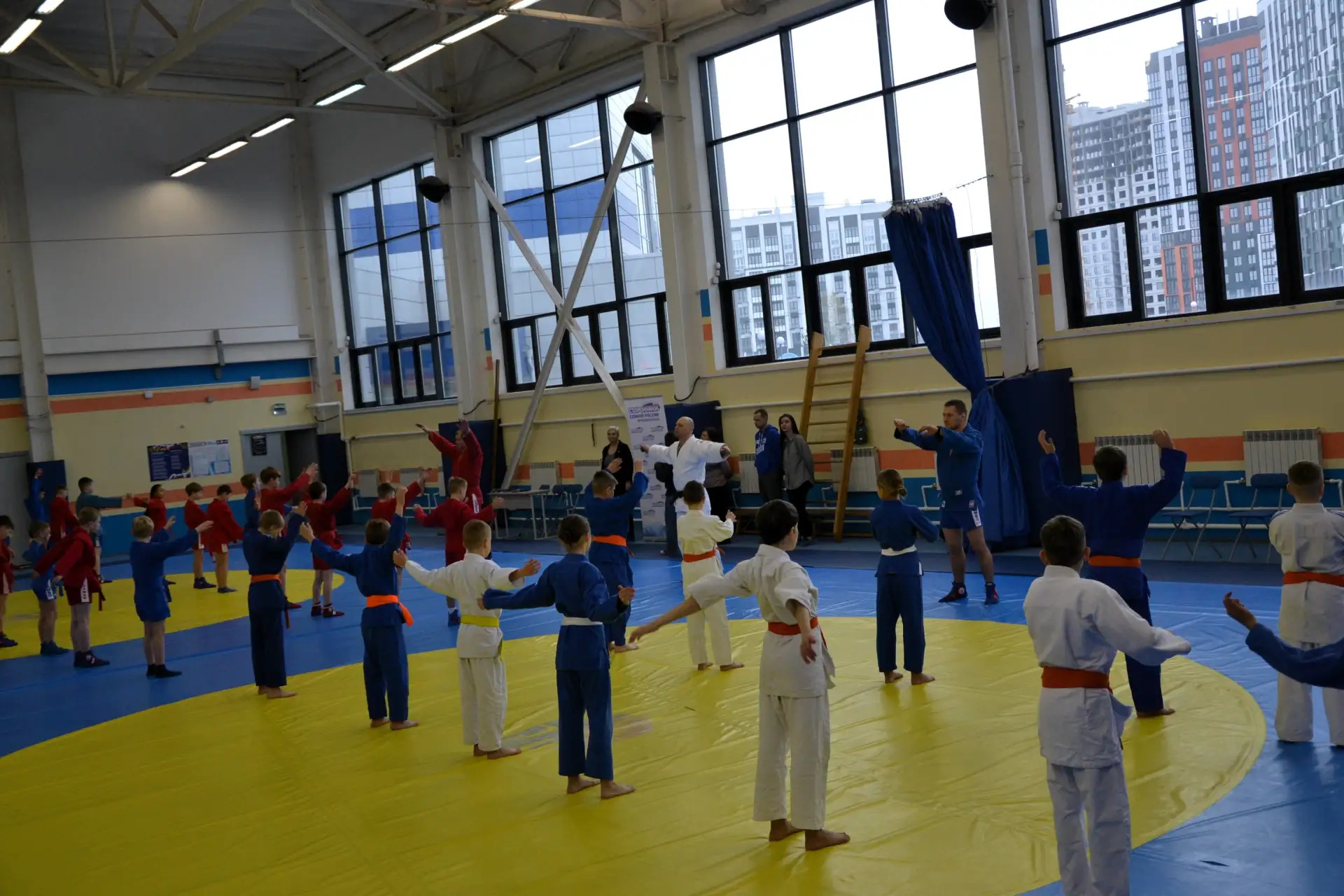 Зарядку для воспитанников нашей спортивной школы провели Мастер спорта России международного класса, Заслуженный тренер России Роман Зубов, Мастер спорта России международного класса Александр Ульяхов и Мастер спорта России Дмитрий Бегленко.