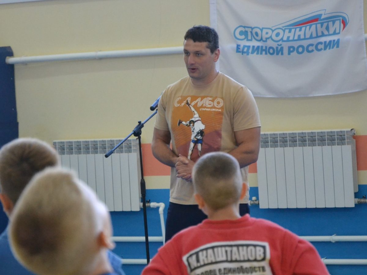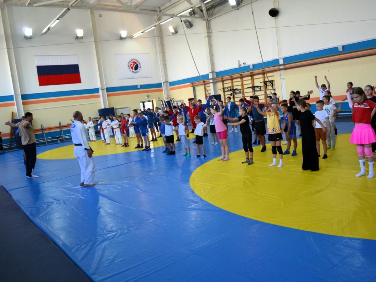 Разминку с воспитанниками нашей спортивной школы провели 10-кратный чемпион мира по самбо Артем Осипенко, мастер спорта России международного класса по самбо, заслуженный тренер России Роман Зубов и мастер спорта России международного класса по самбо Александр Ульяхов.